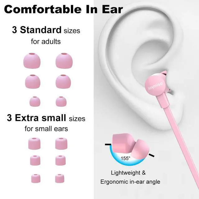 COMFORTABLE EARBUDS FOR KIDS AND SMALL EARS - With a lightweight and ergonomic angled in-ear design, these wired earbuds fit comfortably without any annoying dropping like other heavy and bulky earphones (not for intense exercise). Six different sizes of ear tips are provided for a personalized fit as well as noise isolation from ambient noise. Three standard sizes for adults and three tiny sizes for people with small ear canals like kids (recommended for ages 8+), petite women, boys, and girls.