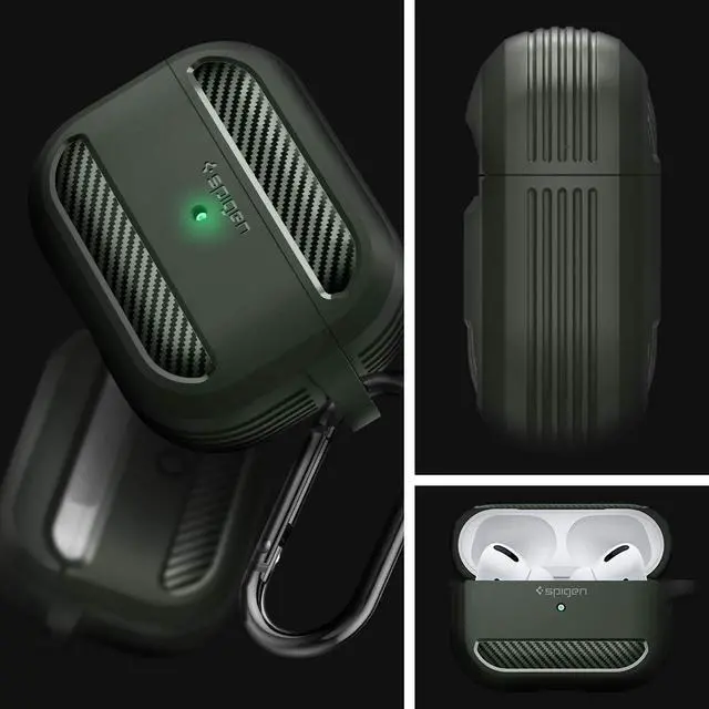 Rugged Armor Designed for Airpods Pro Case Cover Protective with Keychain - Military Green