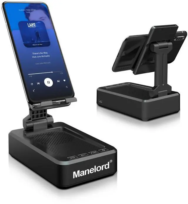 Speaker Phone Stand - Adjustable angle viewing allows for multiple angles to meet your different viewing needs, making it hands-free to enjoy games, videos, and video calls. The Bluetooth 5.0 version and the design of the mobile phone holder enhance convenience.