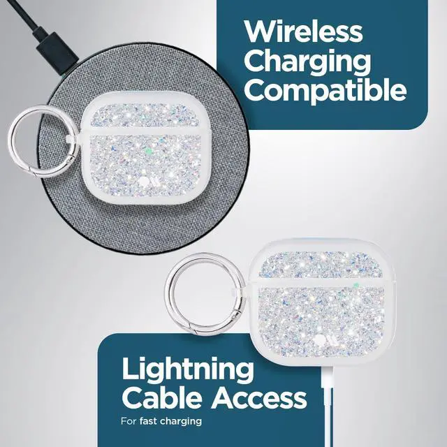 Twinkle Stardust: The Twinkle case for AirPods 3 features eye-catching, reflective iridescent glitter foil that changes at every angle, making your AirPods really sparkle; It has a flat surface with glitter embedded inside a clear resin case, making it very easy to use and carry around.
