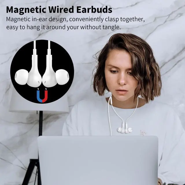 Magnetic Wired Earbuds: A built-in robust magnet on the back of the earphones securely binds the two HiFi earbuds together, offering comfortable wear around your neck when not in use. Effortlessly roll up and carry them without tangling during everyday use.