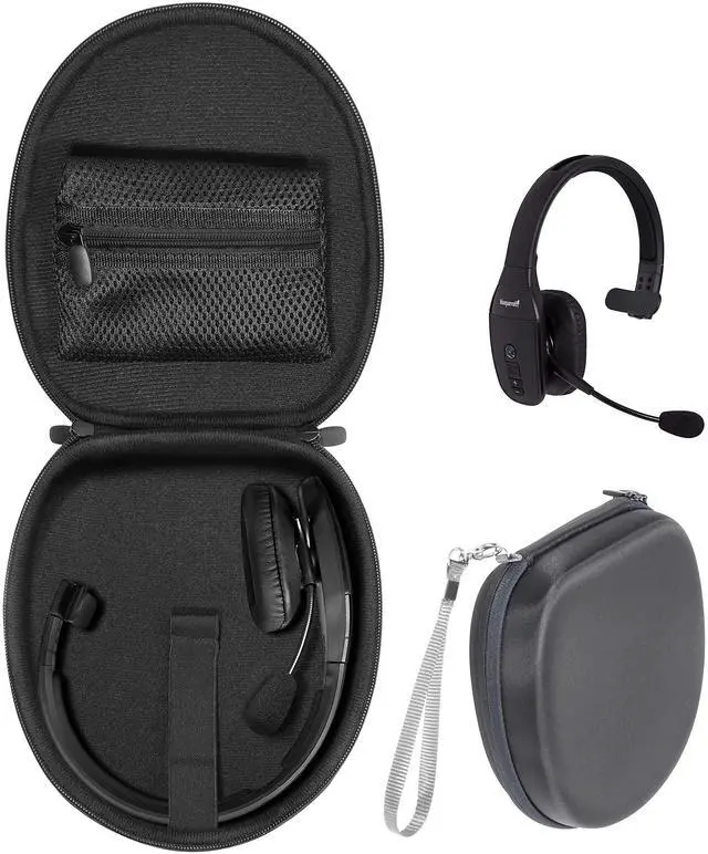 Case for Headset, Mesh Pocket for Cable, Amplifier and Other Accessories, Detachable Wrist Strap