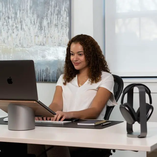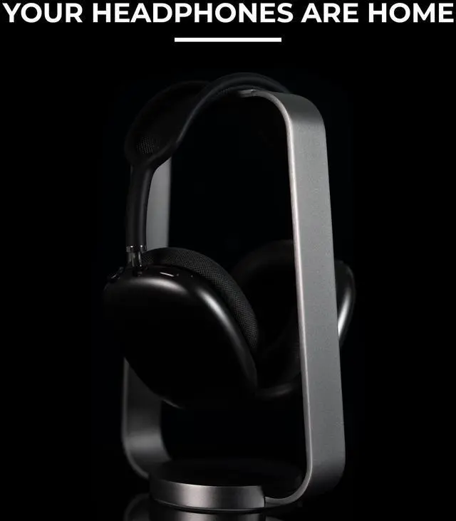 Sleek minimalist aluminum headphone stand in Space Gray: Designed to complement modern workstations and gaming setups, this premium anodized aluminum holder keeps your headphones elevated, visible, and protected. Perfect for users who want a clean, design-focused workspace.