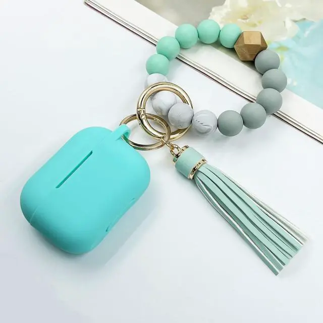 Bracelet Wristlet Keychain: Comes with a cute beaded key holder bracelet made of BPA-free and food-grade silicone, a wooden bead, gold-plated keyring, and PU leather tassel. Specifically designed for women, perfect for decorating your AirPods Pro case and easy to carry.