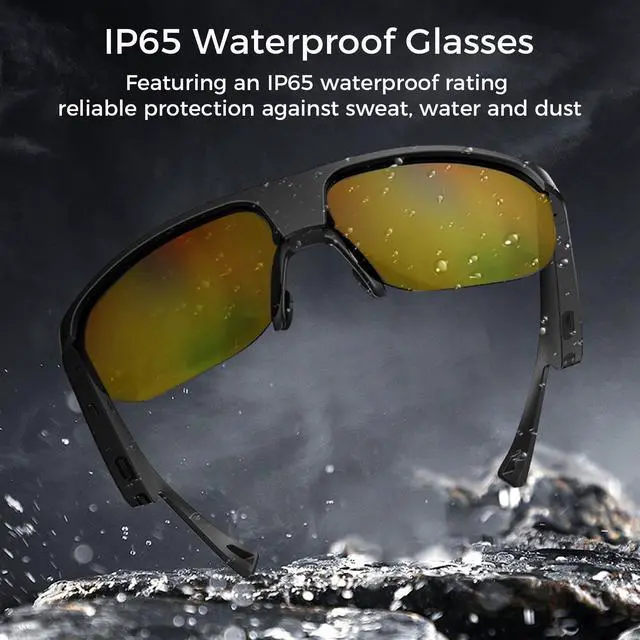 The G02 Smart Glasses are the ultimate blend of technology and outdoor performance, featuring UV400 polarized lenses for full eye protection with enhanced color, clarity, and contrast...ideal for outdoor activities like driving, boating, or skiing. With built-in 360° stereo speakers and an upgraded microphone utilizing CVC noise reduction, enjoy clear communication and immersive sound on the go. These smart sunglasses offer over 5 hours of battery life with convenient magnetic charging that minimizes wear and fully charges in just 70 minutes. Made from lightweight, impact-resistant PC material, they are designed for comfort and durability, boasting an IP65 waterproof rating to handle all weather conditions, sweat, and outdoor elements effortlessly. Perfect for active individuals seeking both functionality and style.