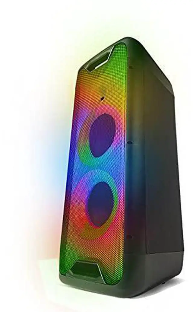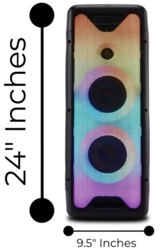 The LED light shines throughout the whole front of the speakers almost as a screen for even more fun and party experience. Many Ways To Play This is not just a wireless Bluetooth speaker. Plug in you USB or SD card reader and let the music flow on its own with your per-mixed beats. Want something live? Switch on the FM Radio and tune into your favorite station. Compact and Ready to Move Each unit measures in at 9.45 inches L x 9.45 inches W x 24.02 inches H. that makes this portable LED lit speaker easy to move and carry, while not taking up too much room, but it still packs an 800-Watt Peak Power.