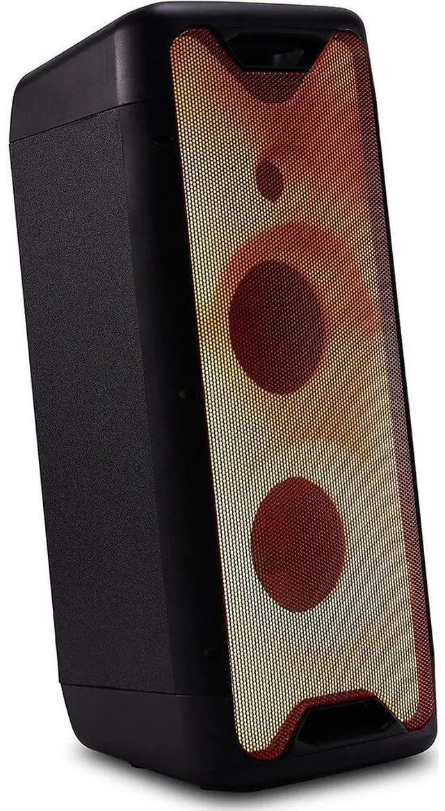 Portable Party Speaker Bluetooth System with dual 6.5 woofers and adjustable beat-synced party LED lights. Delivering 800 Watts Peak Power with a built-in rechargeable battery and built-in Media Player allowing for playback via Bluetooth, FM Radio, SD Card and USB.
