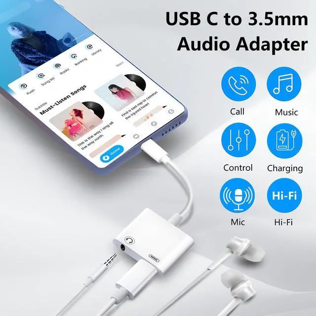 Hi-Res Sound Quality: Ticenpe USB C to 3.5mm Headset Jack Converter with Hi-Res level sound quality,using the high-fidelity DAC chip up to 96kHz/24bit. Helping you enjoy the high-definition lossless,pure original digital sound,making this Type C to Aux Earphone Splitter to be a good choice for listening to music, calling, or playing games, etc. Enjoy Music EffortlesslyThis type c to 3.5mm aux adapter with charging No need to install software, drive, or complex connection mode, plug and play. Let you use the simplest way to enjoy wonderful music anywhere. Supports music playback, calling, and volume control during fast charging.