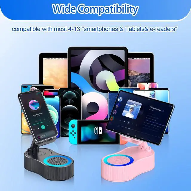 5 in 1 Multifunctional DesignWireless Bluetooth Speaker + Mini karaoke Machine+ 360°Rotatable Phone Stand + Power Bank + ambient lightThis versatile device It brings a lot of convenience for watching videos and making hands-free phone calls. It delivers excellent sound qualitywith rich, full bass, tight and clear mids, and transparent, pure highswithout distortion at any volume.