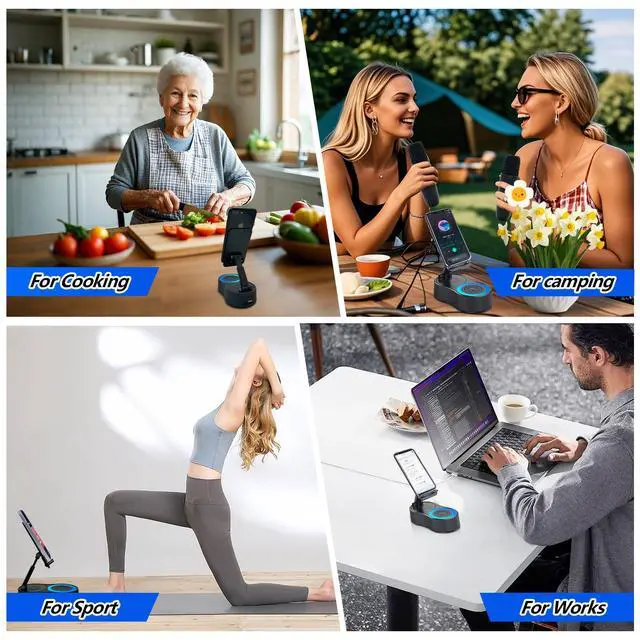 Gifts for Men Women, Cell Phone Stand with Wireless Bluetooth Speaker, Colorful Ambient Light 360° Foldable for Tablet iPhone Android 2 Wireless Microphones HD Surround Sound (Black)