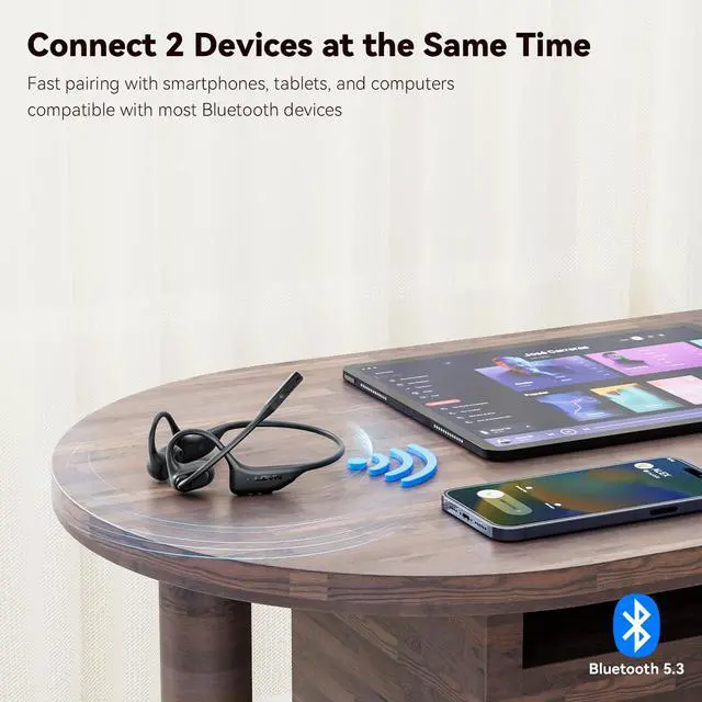 Unlike other headset that cover your ears, our open ear headphones leaves your ears completely open for total awareness of your surroundings for a safe and connected listening experience. Whether on your daily commute or hitting the gym, it seamlessly elevates your audio experience.