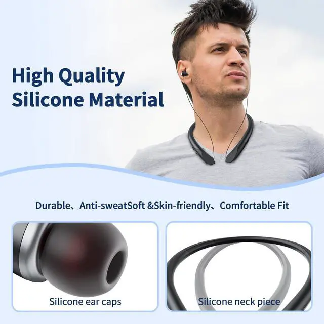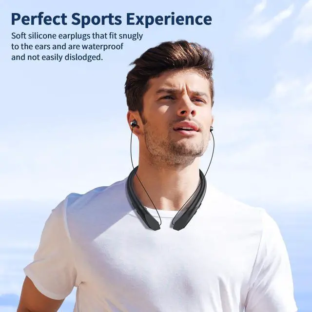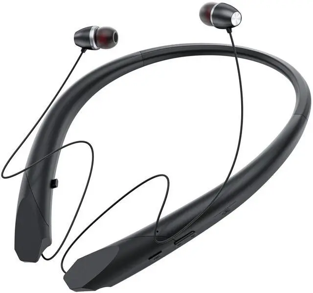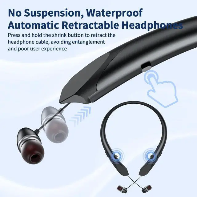 Ergonomic Neckband & Retractable Earbuds Our wireless headphones feature an ergonomic neckband design for enhanced comfort during extended wear. The retractable earbud design allows you to adjust the wire length to your preference, and a simple press of the retract button conveniently stores the earbud wire within the Bluetooth headphones.