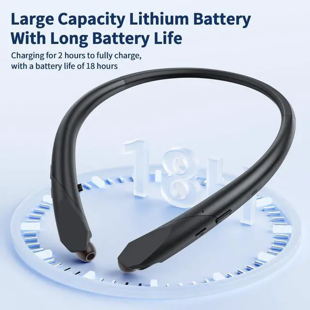 Long-Lasting Bluetooth Neckband Get up to 18 hours playtime from these retractable neckband headphones with fast Type-C charging. These Bluetooth neckband headset also support dual pairing, allowing seamless connection to two devices at onceperfect for switching between your phone and tablet effortlessly