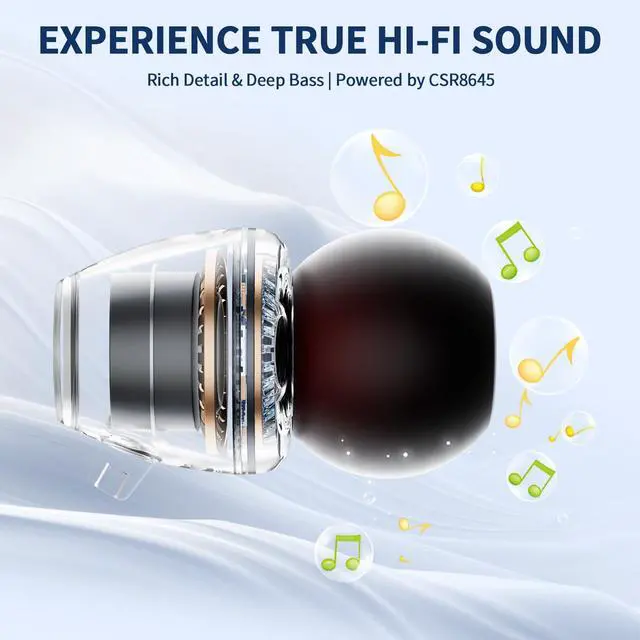 Hi-Fi Sound Quality With Bluetooth 5.1 and CVC6.8 noise-canceling technology, our earphones deliver high-detail treble, superior clarity, and deep bass response. This advanced technology effectively eliminates surrounding noise for clear calls and ensures crystal-clear sound whether you're making calls or listening to music.