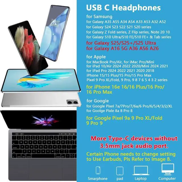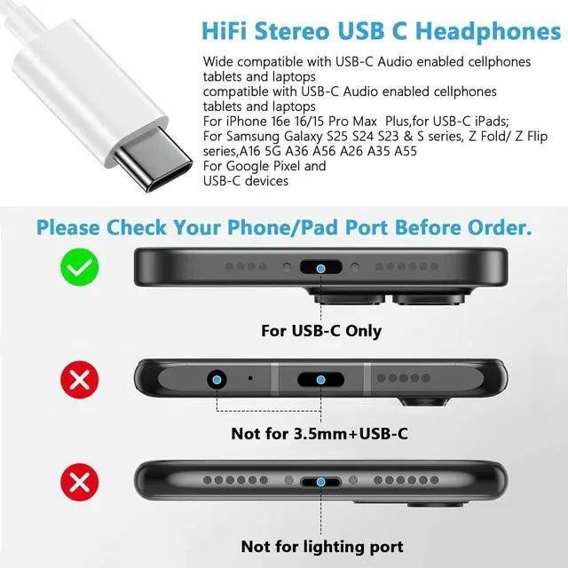 USB C Wired Ear buds Widely Compatibility: