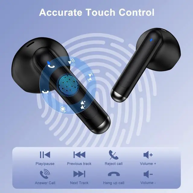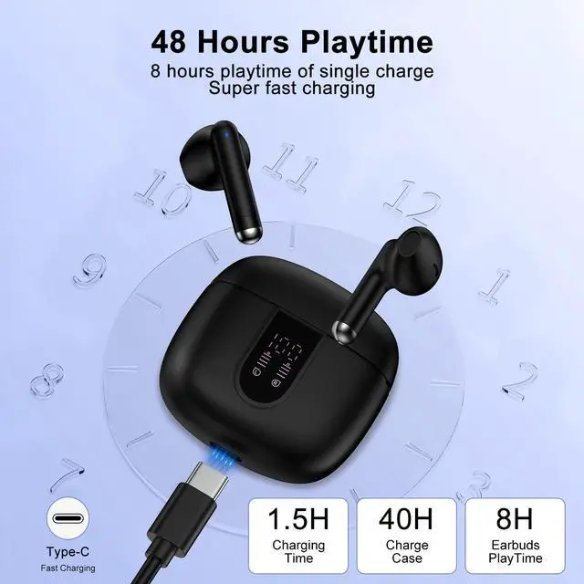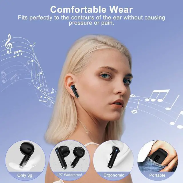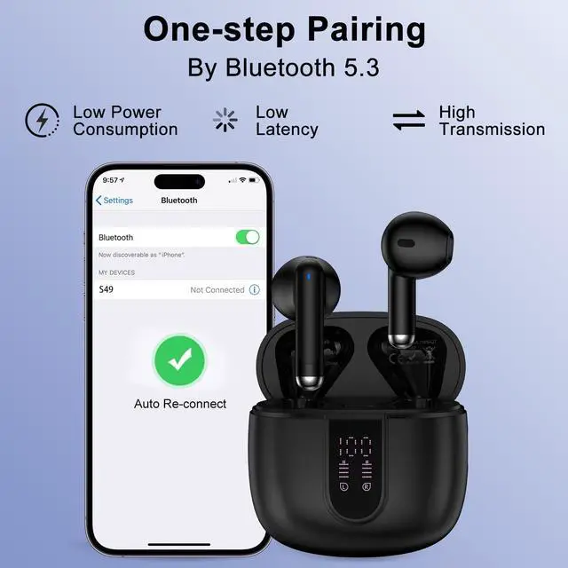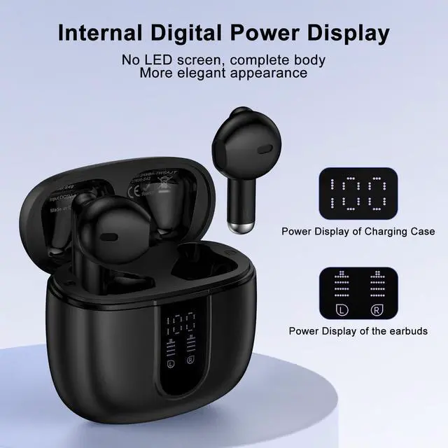 Digtital power display, Wireless charging case, Secure and comfort, IPX5 waterproof, Smart touch control, Auto pairing