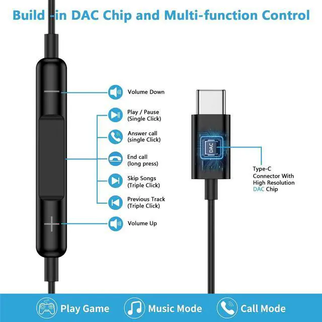 USB C Wired Ear buds Widely Compatibility: