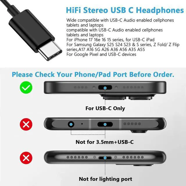 Samsung Wired Headphones USB C for Samsung Galaxy A17 A16 5G S25 FE Ultra , iPhone 17 Air 16 15 series, Google Pixel 10 Pro XL/Pro, ect