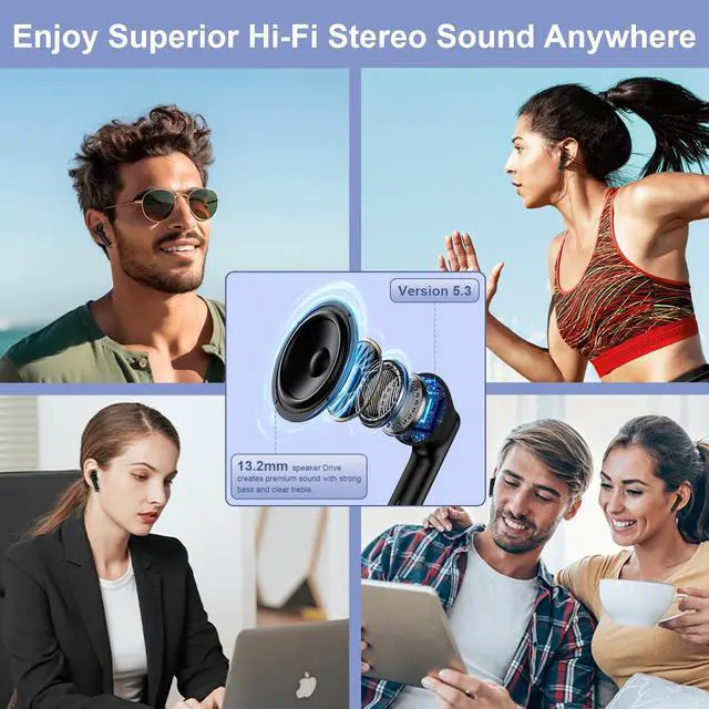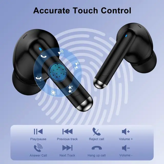 Digtital power display, Wireless charging case, Secure and comfort, IPX5 waterproof, Smart touch control, Auto pairing