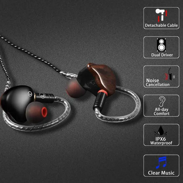 in Ear Monitor Headphones, HiFi Stereo IEM Earphones, Dynamic Dual Driver Wired Earbuds with Detachable Cable, Noise Canceling Headset for Singers Musicians Drummers Audiophile (Wood Grain)