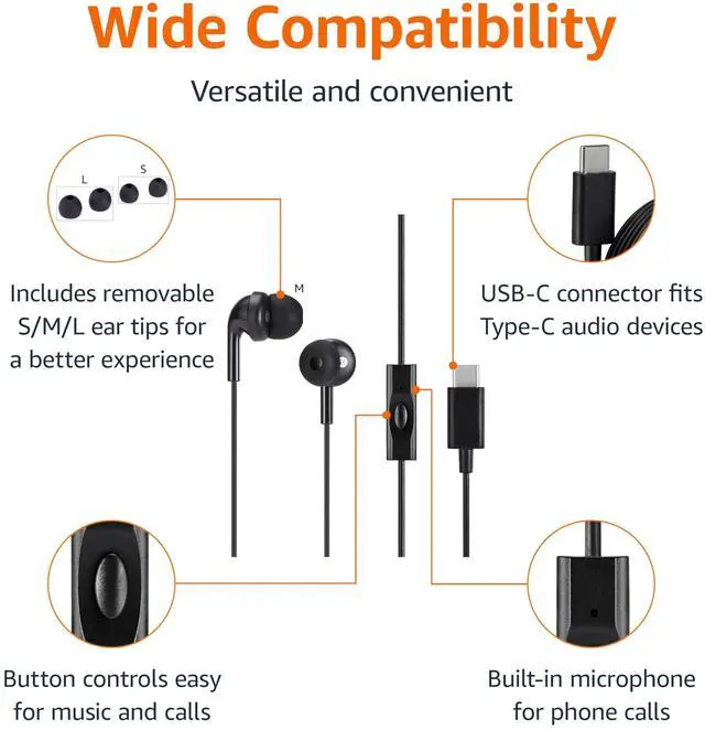 ENHANCED LISTENING EXPERIENCE: Amazon Basics USB-C wired earbuds deliver balanced high, medium, and low frequencies for realistic voice and sound quality.