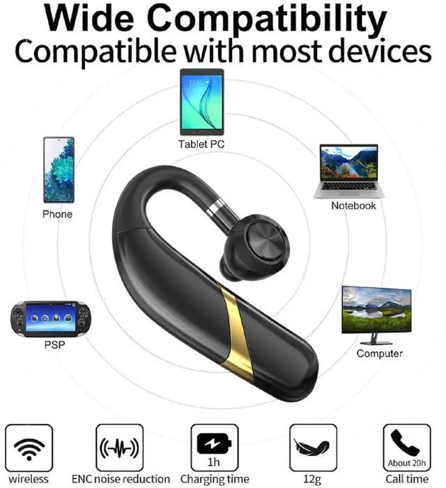 Bluetooth Headset, Wireless Earbuds, Wireless Headset with Microphone, 30 Hours of Usage time, Truck Headset,Single Earbud,Bluetooth Headphones Conversation,Long Lasting,