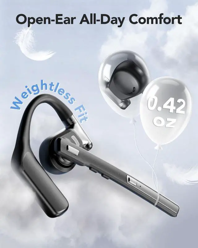 Open-Ear Design for All-Day Comfort & Light-hearted: Experience true all-day comfort with our open-ear design that rests gently outside your ear canal. Unlike traditional earbuds, it eliminates pressure and avoids that "stuffy" feeling, even after hours of wear. Stay safely aware of your surroundingswhether you're driving, walking through the office, or joining a meetingwhile still enjoying clear calls