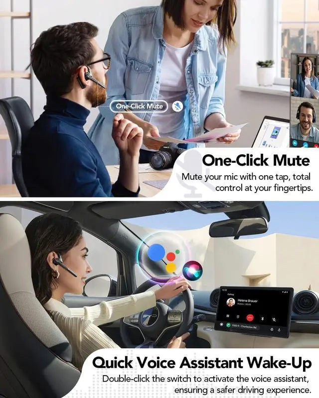 Large-Capacity Charging Case with Extended Battery Life: Built for long workdays and frequent travel, the 950 mAh charging case provides an impressive 96 hours of total talk time with repeated recharges and stop worrying about daily charging. The case features an easy-to-read LED digital display that shows remaining battery at a glance, so you always know when to recharge