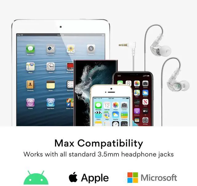 • COMPATIBLE WITH all devices that use a standard 3.5mm (1/8) headphone/AUX jack including iPhone/iPad/iPod and other phones/tablets (3.5mm adapter may be required), mp3 players, computers, gaming consoles/controllers, and gym equipment