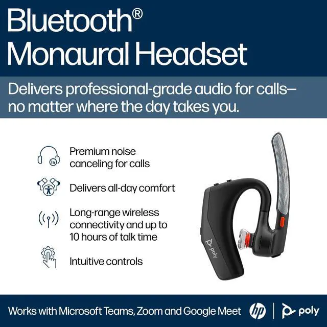 LEGENDARY DESIGN, ALL-DAY COMFORT: Designed for all-day wear, the HP Poly Voyager Legend 30 Bluetooth phone headset features a monaural design with ergonomic ear loop and three earbud sizes for a personalized fit, perfect for long hours of use