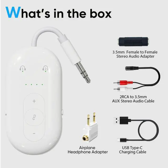 Ultra-simple to use: With a streamlined design and minimal buttonsyoull be up and running in seconds. Just power on the transmitter, put your headphone/earbuds in pairing mode (usually by long-pressing the power/function button on the charging case), and pair instantlyno complicated settings or app required