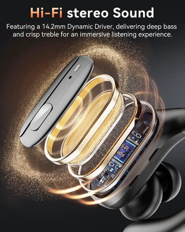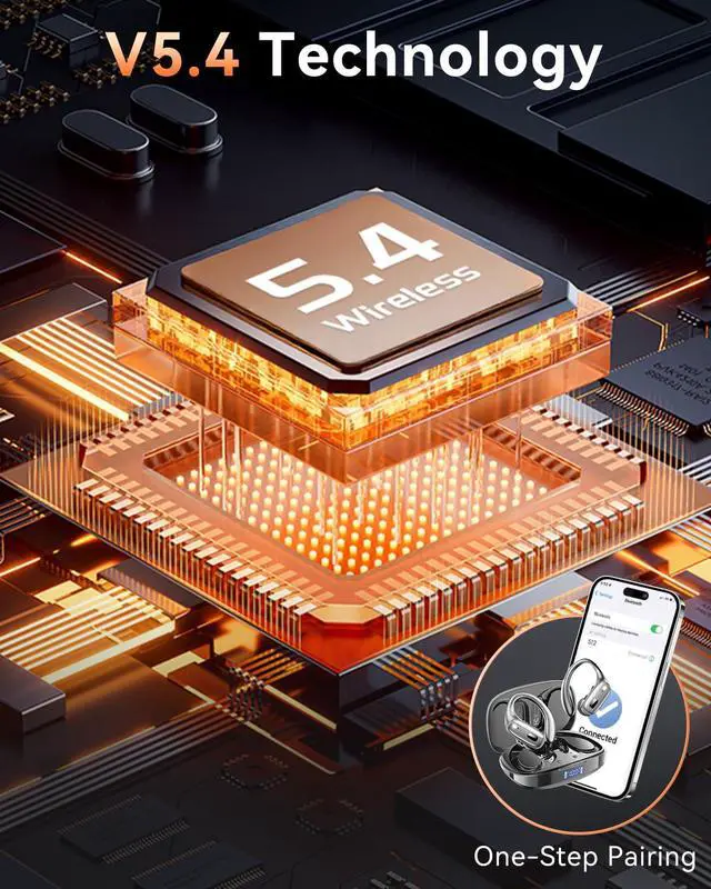 STABLE CONNECTIVITY Bluetooth 5.4 and Hifi Sound. With bluetooth headphones equipped with Bluetooth 5.4, you get a reliable, stable connection with a range of 10-15 meters. The wireless earbuds also deliver superior Hifi sound, so you can enjoy high-quality audio for both calls and music while staying active in your sports or workouts.