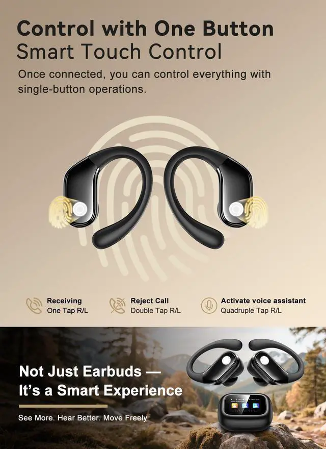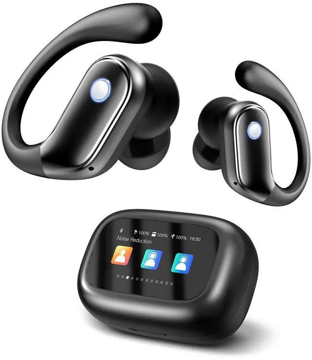 Revolutionary Touchscreen Control Case: Breaking traditional sports earbud design, our Bluetooth earbuds feature not only smart single-tap controls but also an multifunction touchscreen charging case. With fingertip touches, effortlessly switch songs, adjust volume, 5 EQ modes, locate earbuds, or take calls. Whether in work meetings or intense workouts, the Smart Interactive System keeps your music experience effortlessly smoothdelivering true hands-free control