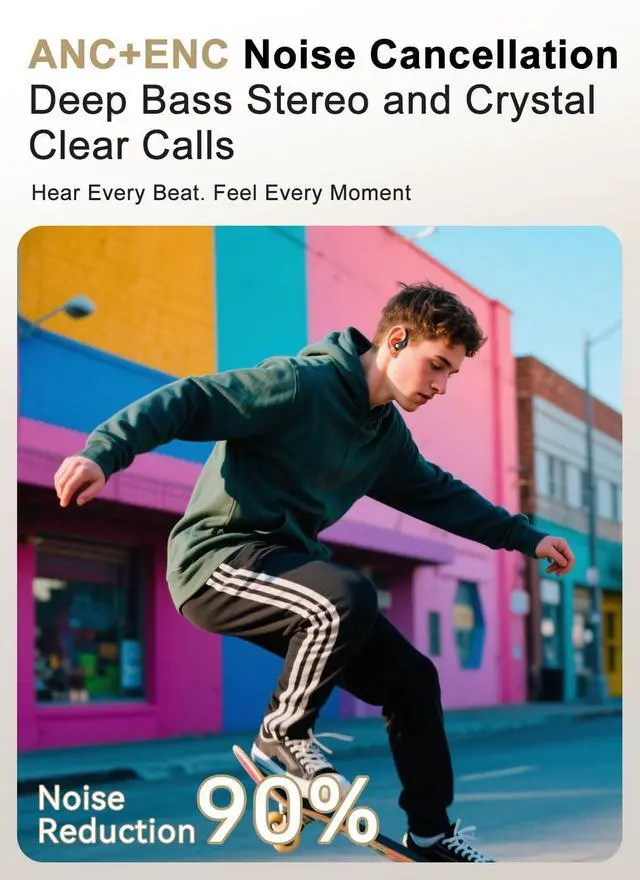 PRO-TUNED 12MM DRIVERS & ONE-TOUCH EQ: Dont just listenexperience every beat. Powered by oversized 12mm dynamic drivers, our Bluetooth headphones deliver high-fidelity stereo sound with deep, punchy bass and zero distortion. Instantly tailor the acoustics to your heart rate using 5 built-in EQ modes (Bass Boost/Rock/Pop, etc.) directly on the case. From explosive sprints to meditative yoga, the perfect soundscape is now just a tap away