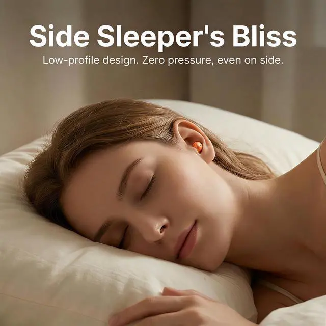 Wireless Sleep Earbuds for Side Sleepers, Noise-Reduction in-Ear Headphones with Deep Bass, Miniature Invisible Buds for Small Canals, Stay-in Design for Mobile Devices (Sunbeam Orange)
