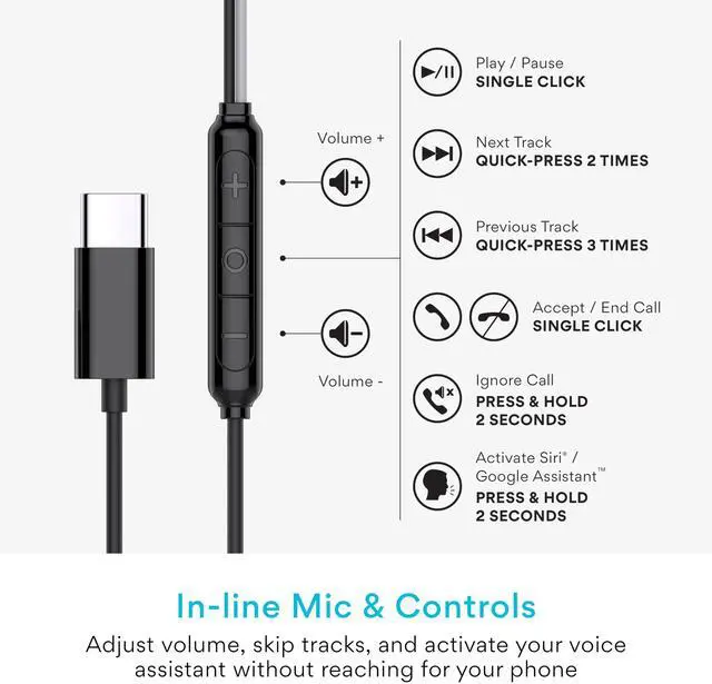 BUILT-IN HEADSET & 3-BUTTON REMOTE: Integrated microphone and remote allow you to adjust volume, control media playback, take calls, and communicate with your voice assistant without reaching for your phone or tablet.