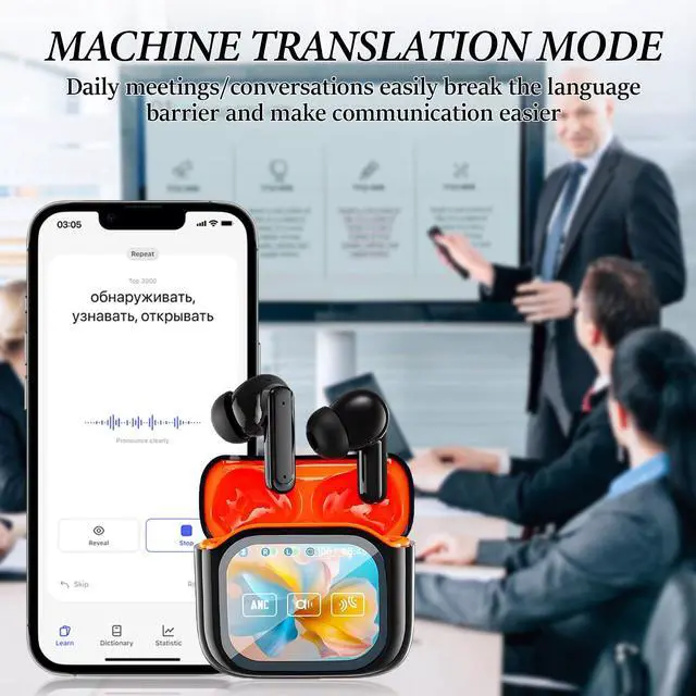 Smart touch displayThe charging box of the translation earbuds is equipped with an upgraded large-size color display. Through the display, you can not only perform basic music control, make and receive calls, but also realize functions such as taking photos and liking.