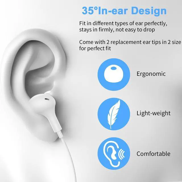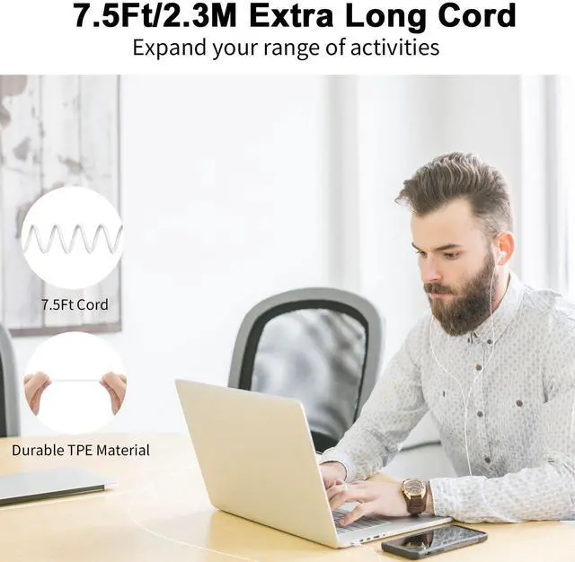 | Authentic Comfort | Most over-the-head computer headphones are bulky and heavy, and tends to leave you stuffy and with a headache that messes up your hairstyle, especially on hot summer days. Our USB earbuds are compact and lightweight, and are ergonomically designed to fit perfectly in your ears for superior comfort |