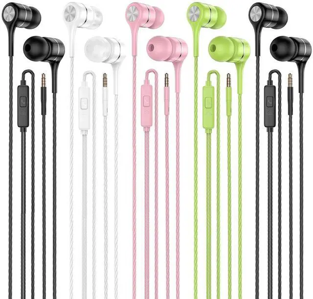 Earbuds Earphones with Microphone, 5 Pack Wired Heavy Bass Headphones, Earphone with Noise Isolating, Fits 3.5 mm Interface for iPad, Desktop