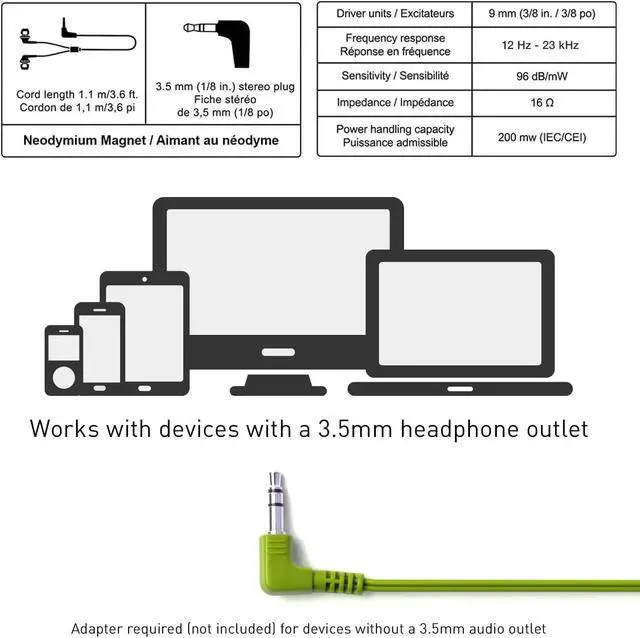 Versatile earbuds for your desktop, laptop, tablet, cellphone, mp3 player, or any device that accepts a standard 3.5mm headphone jack.