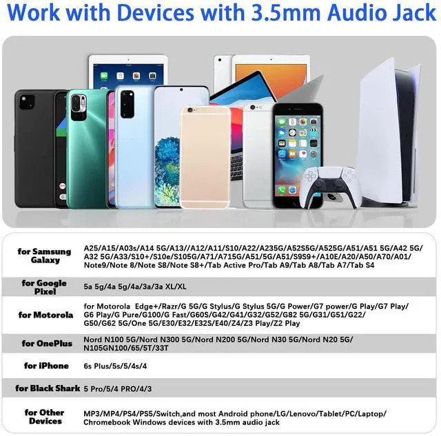 and for Switch MP4, MP3, mobile, tablet, laptop, desktops, Android cellphone,for LG, PC, for Chromebook,Windows devices and more 3.5mm audio jack .