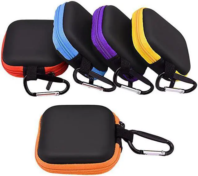 **********Package: 5 pieces mini carrying cases with 5 carabiners, including red, blue, yellow, orange, purple 5 colors cases, great for multiple use or share with your family and friends*****Portable size: 3x3x1 inches pocket-sized, save space and reduce clutter for your bag, Lightweight