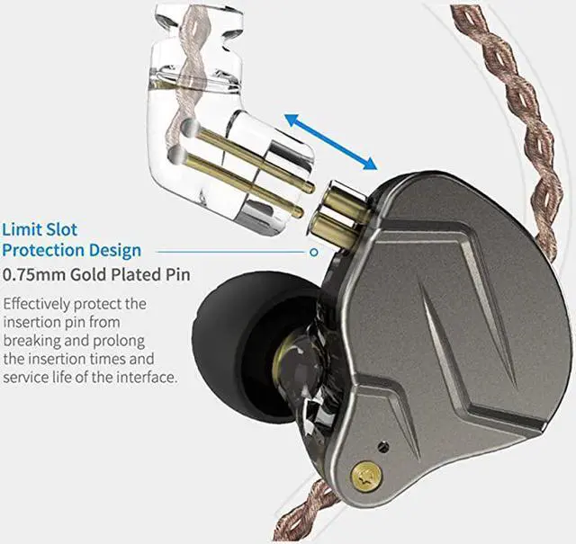 IMPROVED KZ ZSN PRO: customized 30095 balanced armature and 10mm dynamic driver, which provide excellent bass sound. Its full of low frequency, rich in details. The sounds signature is balanced, coherent top to bottom with good deep solid bass, clear mid range and beautiful high frequencies. *****IMPROVED DETACHABLE CABLEThe kz zsn pro upgraded cable with slot protection design. It can effectively protect the pins to avoid breakage and extend the service life. Easy replacement also enables more potential of the earphones. You can replace it with other iem cables, search cable to get the cable what you need. *****NOISE CANCELING & ERGONOMIC WEARINGIn the absence of playing music, pr