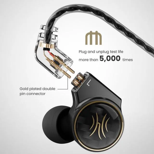 Durable gold-plated dual-pin connector. Adopting 0.78mm gold-plated two-pin connector, easy to plug and unplug, stable connection, and provide long-lasting high-definition sound experience.
