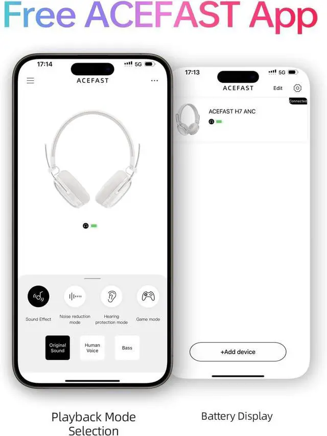Exceptional Sound Quality: Acefast H7 headphones feature dual 40mm drivers that deliver high-resolution audio with balanced, deep bass for an enhanced listening experience. Customize your sound with multiple sound settings and playback modes using the ACEFAST APP, ensuring your music always sounds its best.