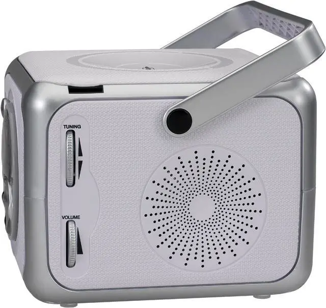 • FM Stereo Receiver, Bass Boost, Headphone Jack, Built-in Carrying Handle