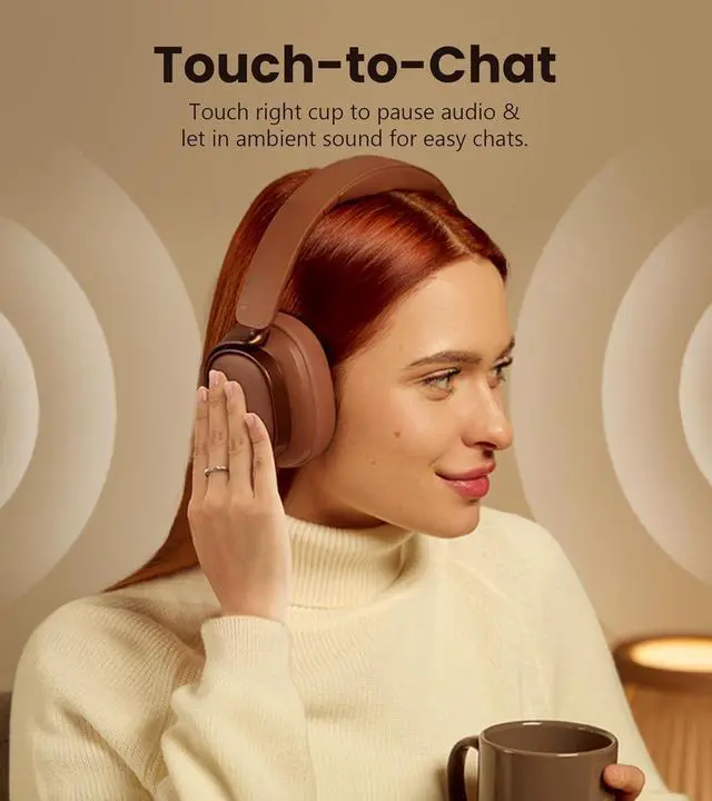 All-Day Comfort: Skin-friendly leather ear cushions, an ergonomic steel headband, and a lightweight 260g build keep you comfortable all day. Fully foldable design and Touch-to-Chat make these headphones ideal for travel and work alike.