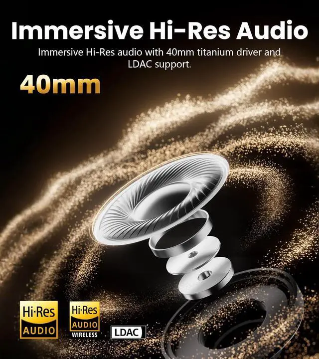 Immersive Hi-Res Audio: Enjoy superb Hi-Res Audio and Hi-Res Audio Wireless certification, with 40mm titanium-coated drivers and LDAC/SBC support. Choose from Music, Game or Spatial sound effects to personalize your listening experience.