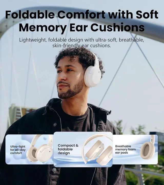 Portable and Comfortable Design: Designed to be lightweight and foldable, these headphones balance comfort and portability; Soft memory foam ear cushions adapt to your ears, while the compact design conveniently fits in bags or backpacks for daily commuting and travel