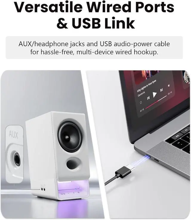 Universal Connectivity for All Your Devices: Stream wirelessly via Bluetooth 6.0 with multipoint pairing for easy switch between two devices. Plug-and-play USB transmits power/audio; AUX supports turntables/tablets